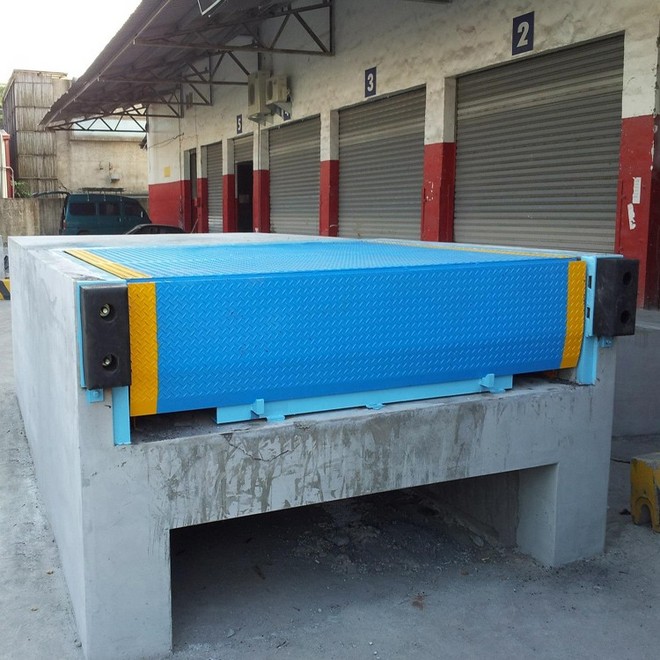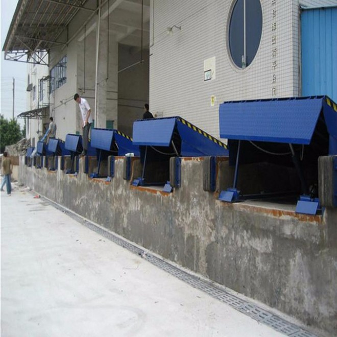 固定式登車(chē)橋是與倉(cāng)儲(chǔ)月臺(tái)一起的裝卸輔助設(shè)備,本設(shè)備與月臺(tái)一體,可根據(jù)貨車(chē)車(chē)廂不同高度調(diào)節(jié)即可調(diào)高也可調(diào)低,方便叉車(chē)駛?cè)胲?chē)廂,設(shè)備采用進(jìn)口液壓泵站,兩側(cè)設(shè)有防軋裙板,工作更加安全,提高工作效率。